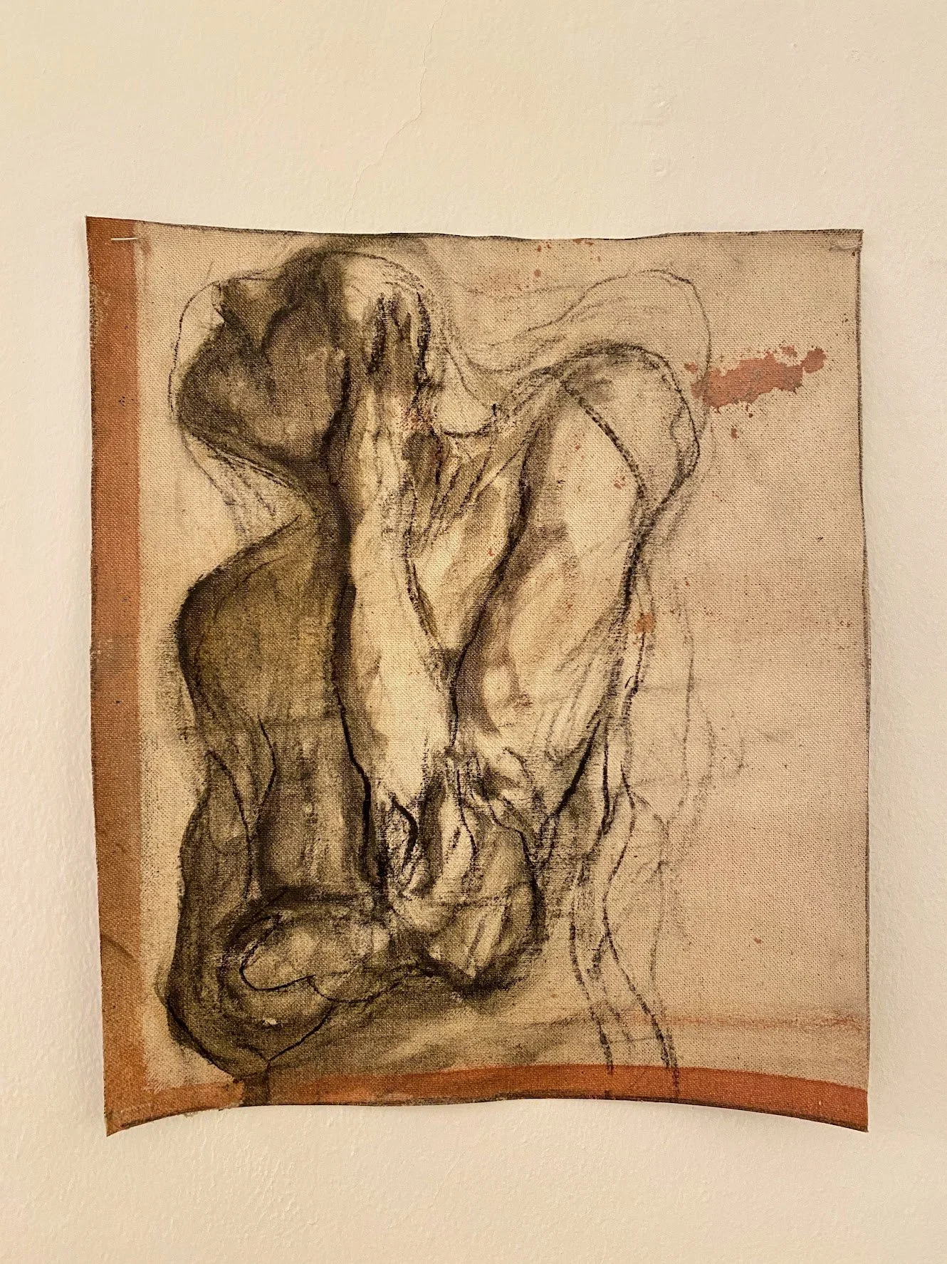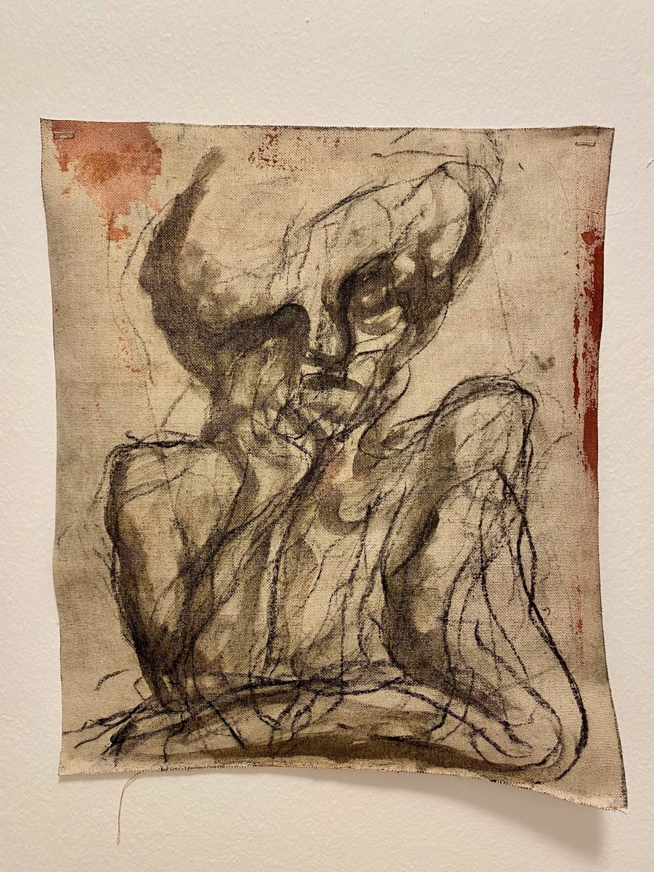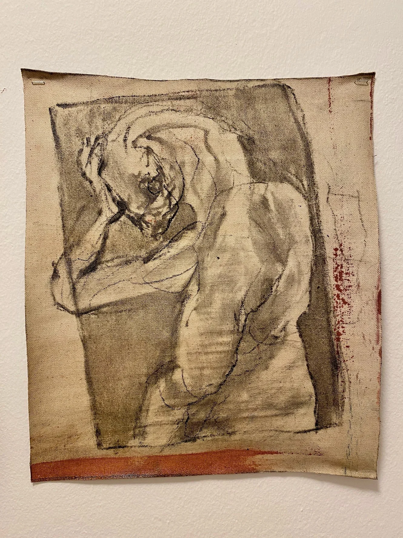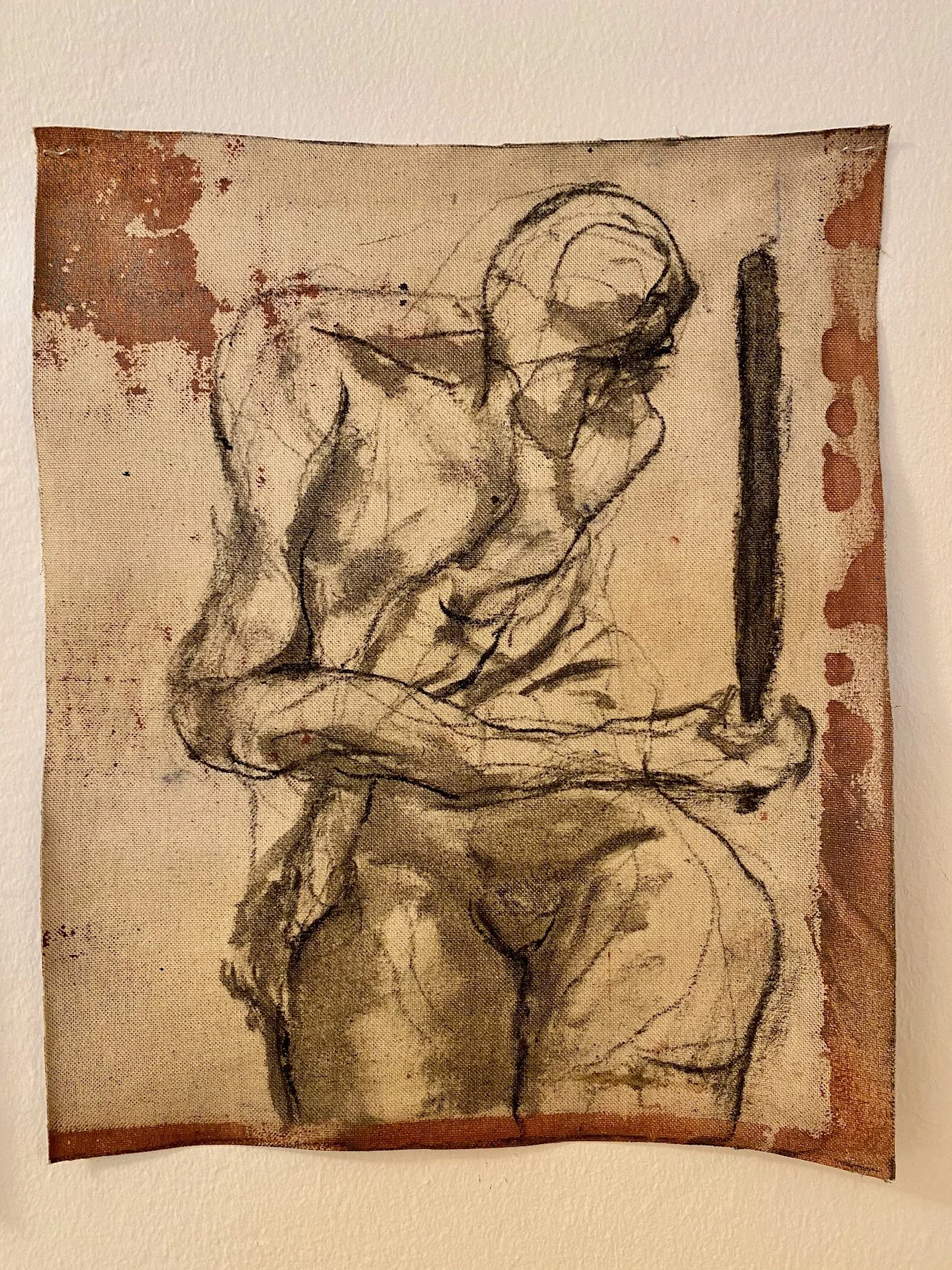 Begin by moving intuitively, then find the forms within the shapes, the figures emerging from loose and searching lines. Maybe this says something or other about the human condition. Sometimes we hold objects, something is in anguish. I wasn’t feeling great at the time.
