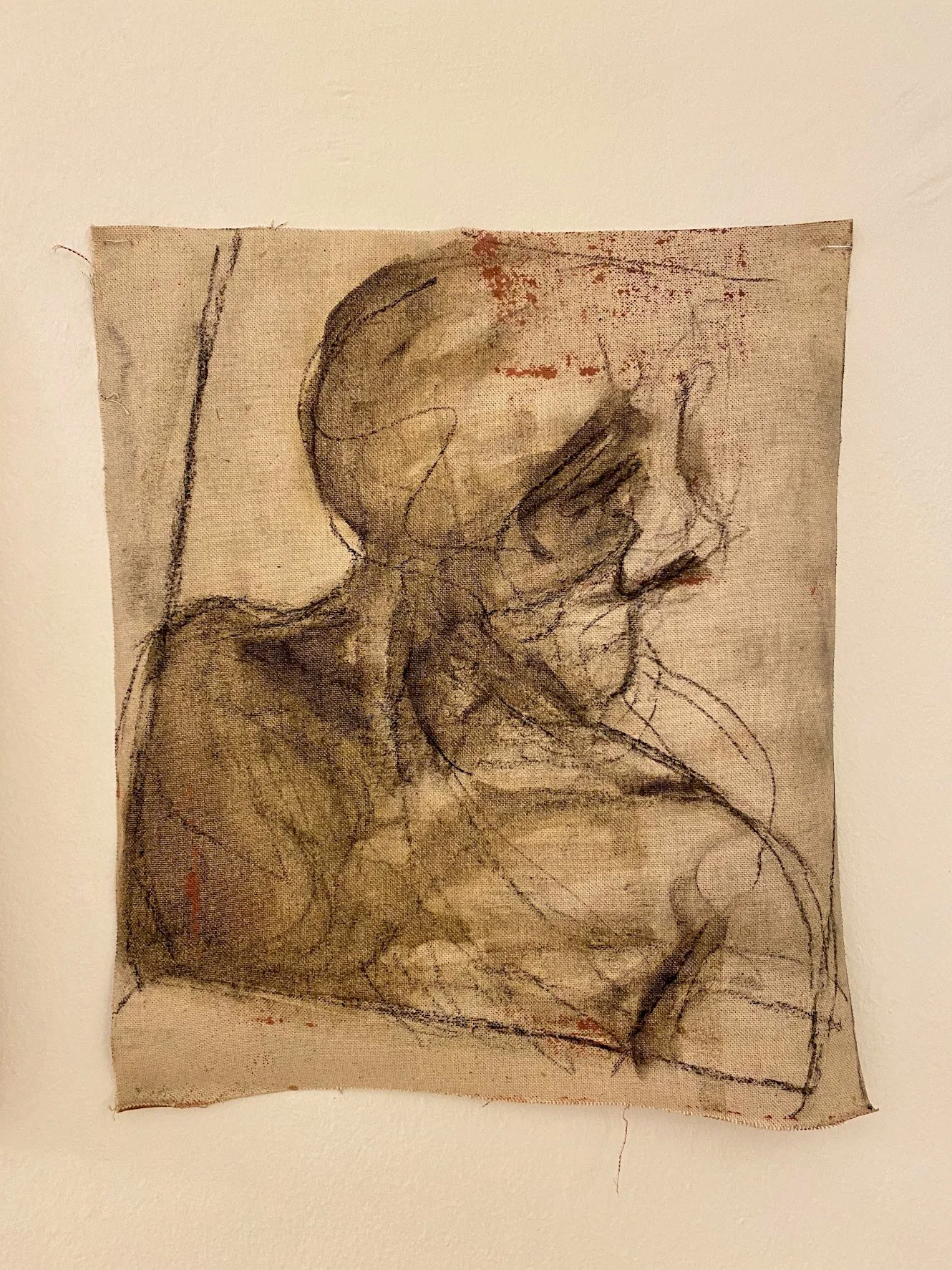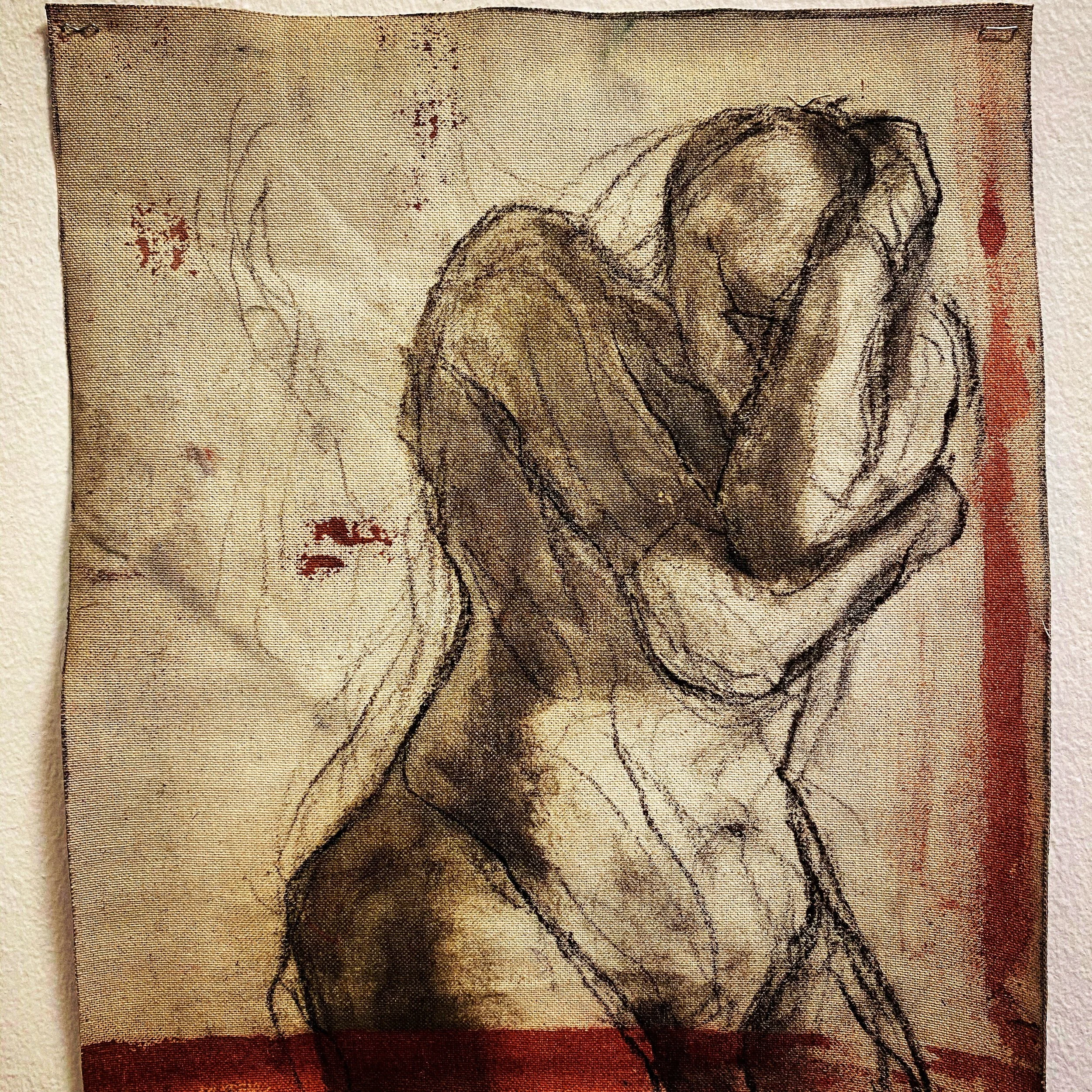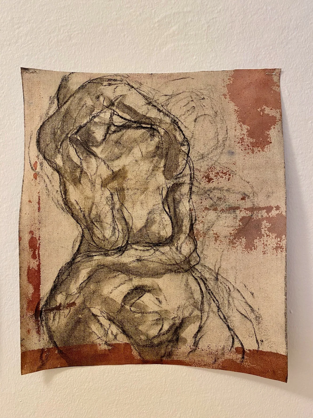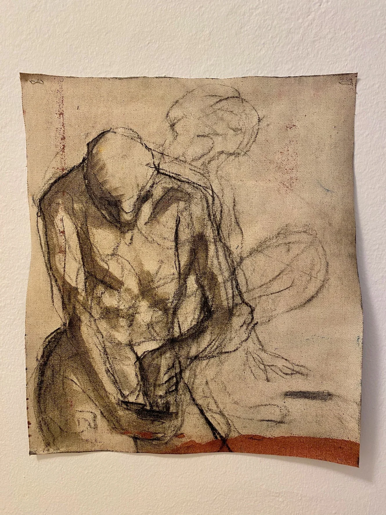 Begin by moving intuitively, then find the forms within the shapes, the figures emerging from loose and searching lines. Maybe this says something or other about the human condition. Sometimes we hold objects, something is in anguish. I wasn’t feeling great at the time.